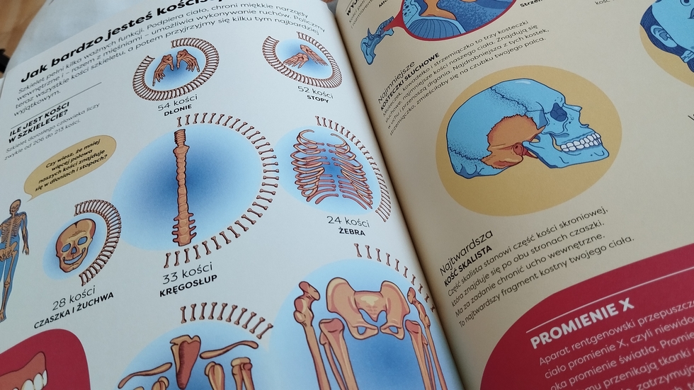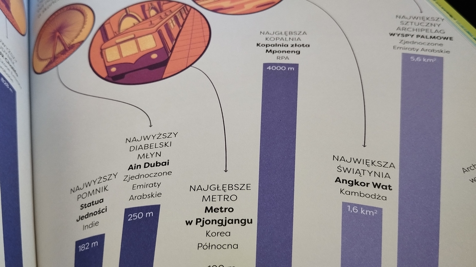 Kiedy moje dwunastoletnie dziecko wzięło „Inforgrafikę” do ręki, usłyszałam, że przecież nie będzie się jej chciało tego czytać. A potem otworzyła i przepadła. Zaczęła od czarnych dziur, a potem na wyrywki otwierała strony i chłonęła wiedzę. Dziesięciolatek z kolei wzruszył ramionami, ale po obejrzeniu okładki i znalezieniu na niej informacji, że może się z tej książki dowiedzieć, ile wanien smarków produkuje człowiek – też był kupiony.