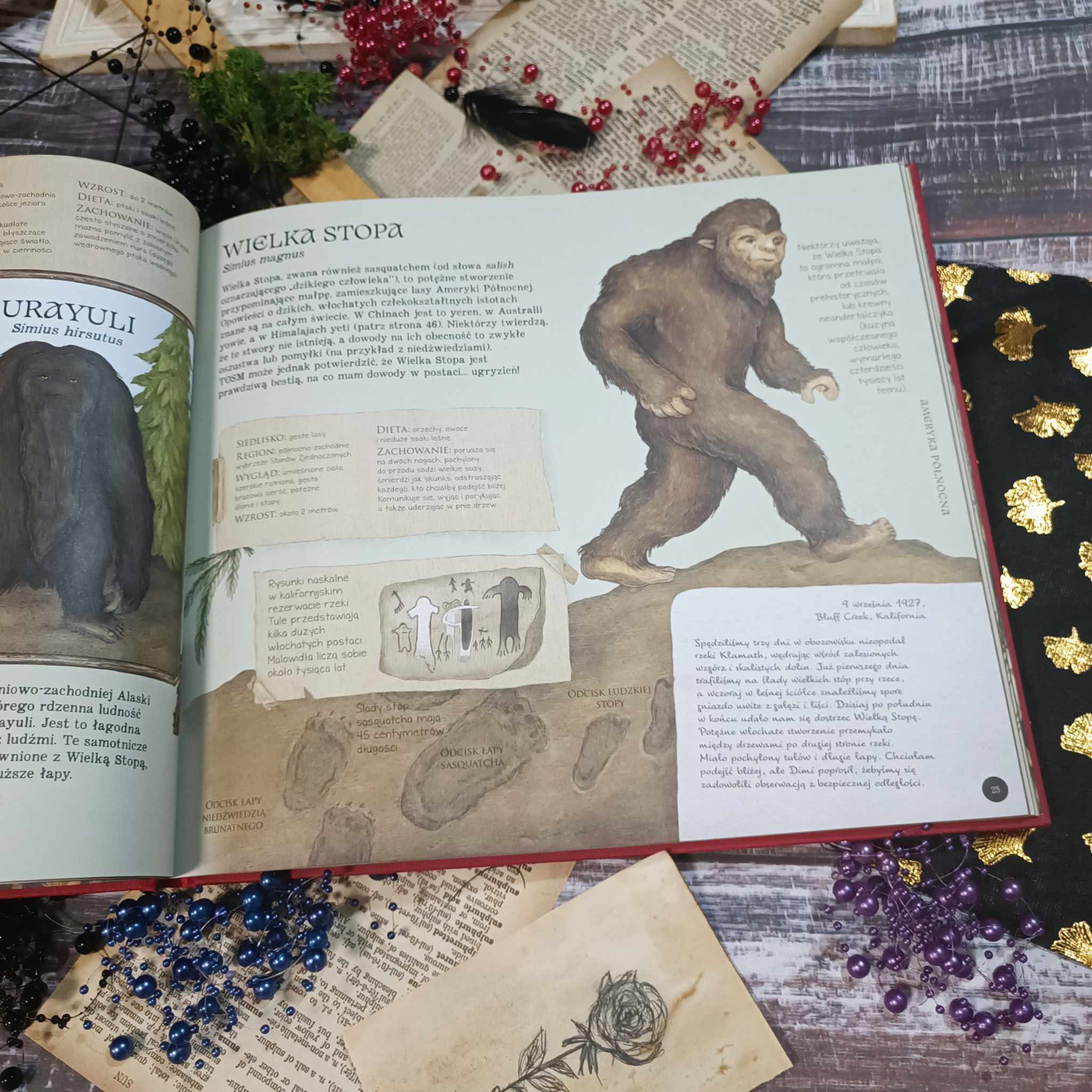 Morskie głębiny skrywające tak wiele w swym mroku, amazońska dżungla kusząca zielenią i tajemnice odległych zakątków każdego z kontynentów. Tak, właśnie stajemy przed możliwością wyprawy, która odmieni nasze życie i otworzy przed nami świat stworzeń, o których wielu słyszało, ale czy ktoś faktycznie je widział? To niesamowite jak zapadałam się w ten swego rodzaju dziennik wypraw obrazujący przygody, wiedzę i próby udowodnienia istnienia Wielkiej Stopy czy potwora z Loch Ness. Przepadliśmy. Całość kusi formatem i lekkim językiem, który, choć przypomina zapiski naukowców, to trafi do młodszego czytelnika bez najmniejszego problemu. Sporo tu ciekawostek i niesamowitych opisów. Nie brakuje również podstawowych informacji o przedstawianych gatunkach. Gdzie żyły, czym się żywiły i jakie są ich charakterystyczne cechy. Nie można też zapomnieć o tym, co właściwie czyni ich wyjątkowymi.