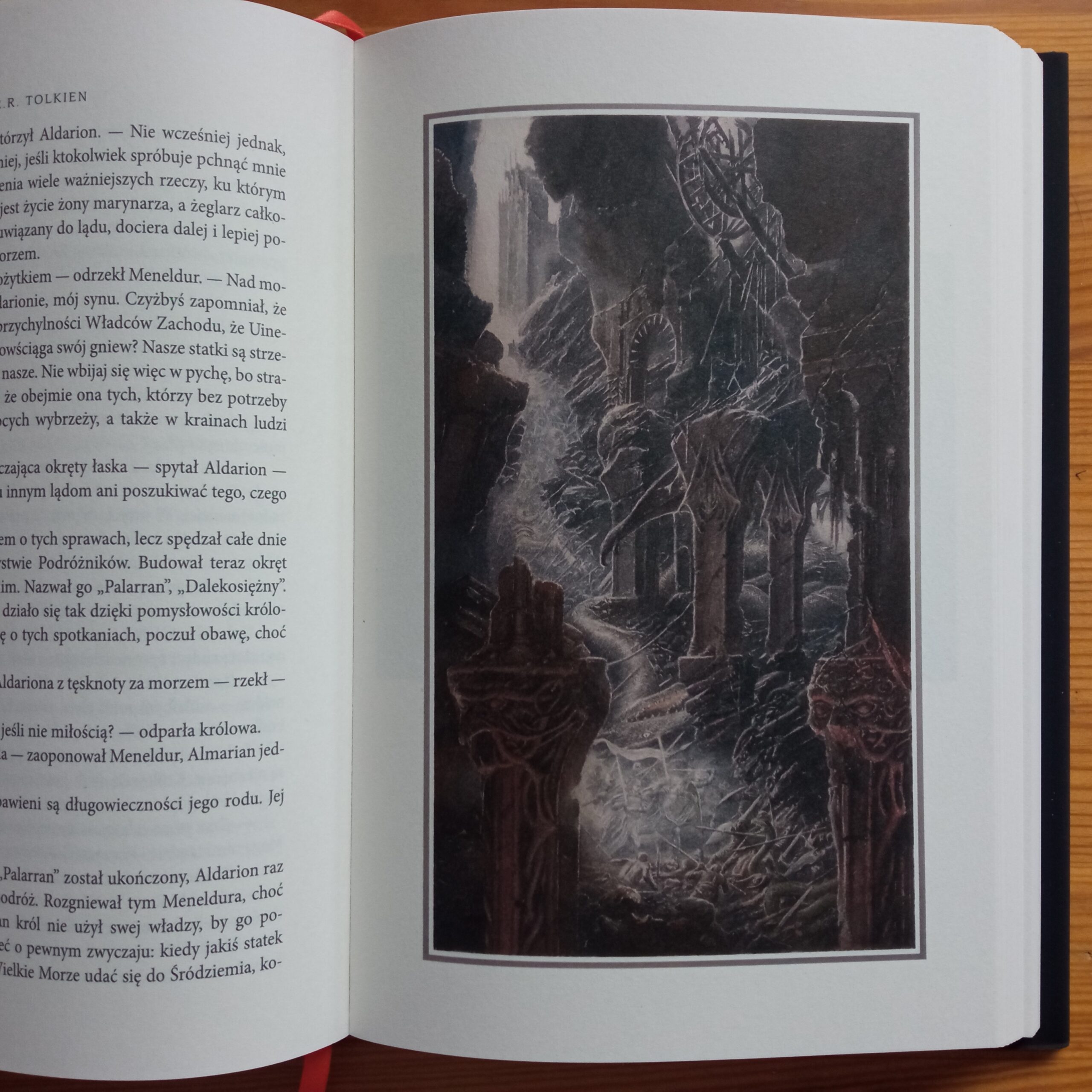 Wstęp do publikacji, poprzedzające go informacje o zawartości książki, a także kilka słów o tym, co działo się przed Drugą Erą, dostarczają podsumowania wzmianek i rozległego rzutu oka na historię Númenoru. Książka przywołuje wiele wrażeń, można ją chłonąć w dłuższych odcinkach lub skoncentrować się na wybranych. Precyzyjnie oddzielone części ułatwiają poruszanie się i odnajdywanie poszukiwanych informacji. Tolkien należy do moich ulubionych pisarzy, chętnie wracam do jego twórczości, a teraz, za pośrednictwem tego wydania, otrzymuję nęcący impuls, aby kolejny raz zabrać się za nią, z większą radością i zrozumieniem. Uwielbiam szkatułkowe i epickie przygody czytelnicze, napisane z rozmachem i dbałością o szczegóły, wiem, że należą do świata fantasy, ale jednocześnie mam wrażenie, że w osobliwy sposób żyją, toczy się w nich bieg historii, którego poznawanie niesamowicie ekscytuje i dostarcza wiele satysfakcji. Doskonały prezent dla miłośników twórczości Tolkiena, każdy z nich chciałby mieć „Upadek Númenoru” na półce i często do niej zaglądać, zazdroszczę tym, którzy po raz pierwszy będą ją poznawać.